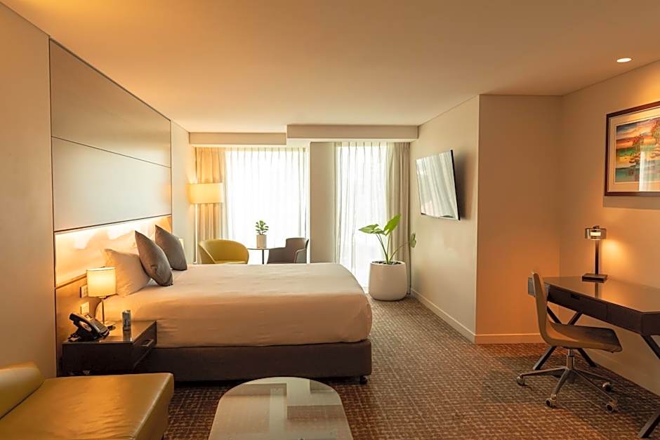Perfect from which to work, relax or entertain, the Balcony Suite features a private balcony boasting glimpses of the Brisbane River or CBD skyline, a lounge-dining area featuring a fresh, contemporary decor and separate bedroom with a King sized bed, luxury mattress topper and 50" LCD television with Chromecast to stream your favorite entertainment.
